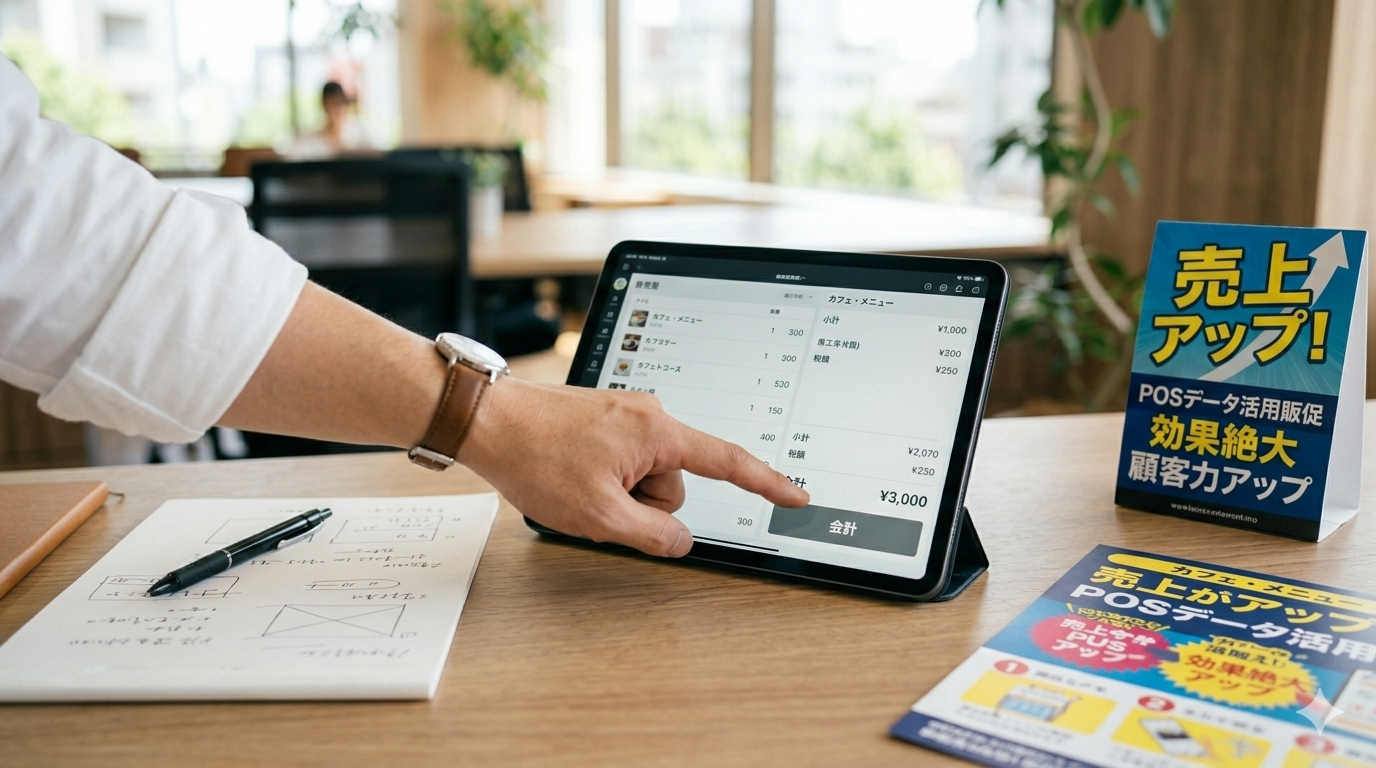 POSレジ導入から売上データ分析、販促物制作、Web集客まで。売上改善に必要な施策を一貫してサポートします。
